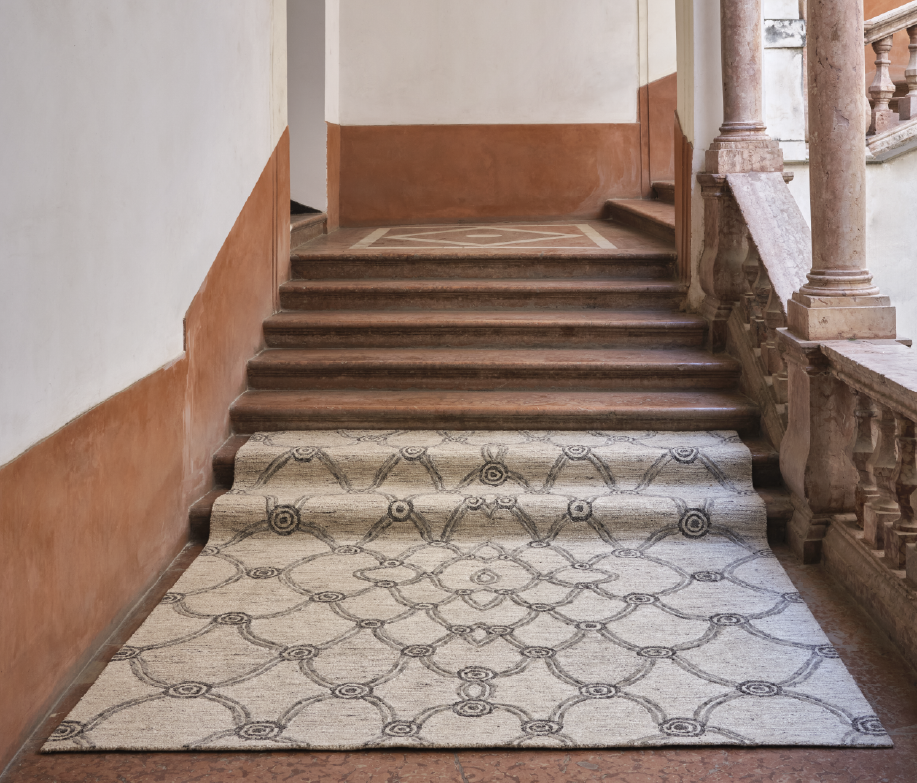 Like the Papiri design, my work embodies a sense of “intertextuality” with mythology. The Pitagora design, my first carpet, marked the beginning of my artistic journey, possibly inspired by Pythagoras. My Sicilian Odyssey unfolds in a Mediterranean world rich with mythical references. Interestingly, Pythagoras’ “resonance” ties to Hindu practice.